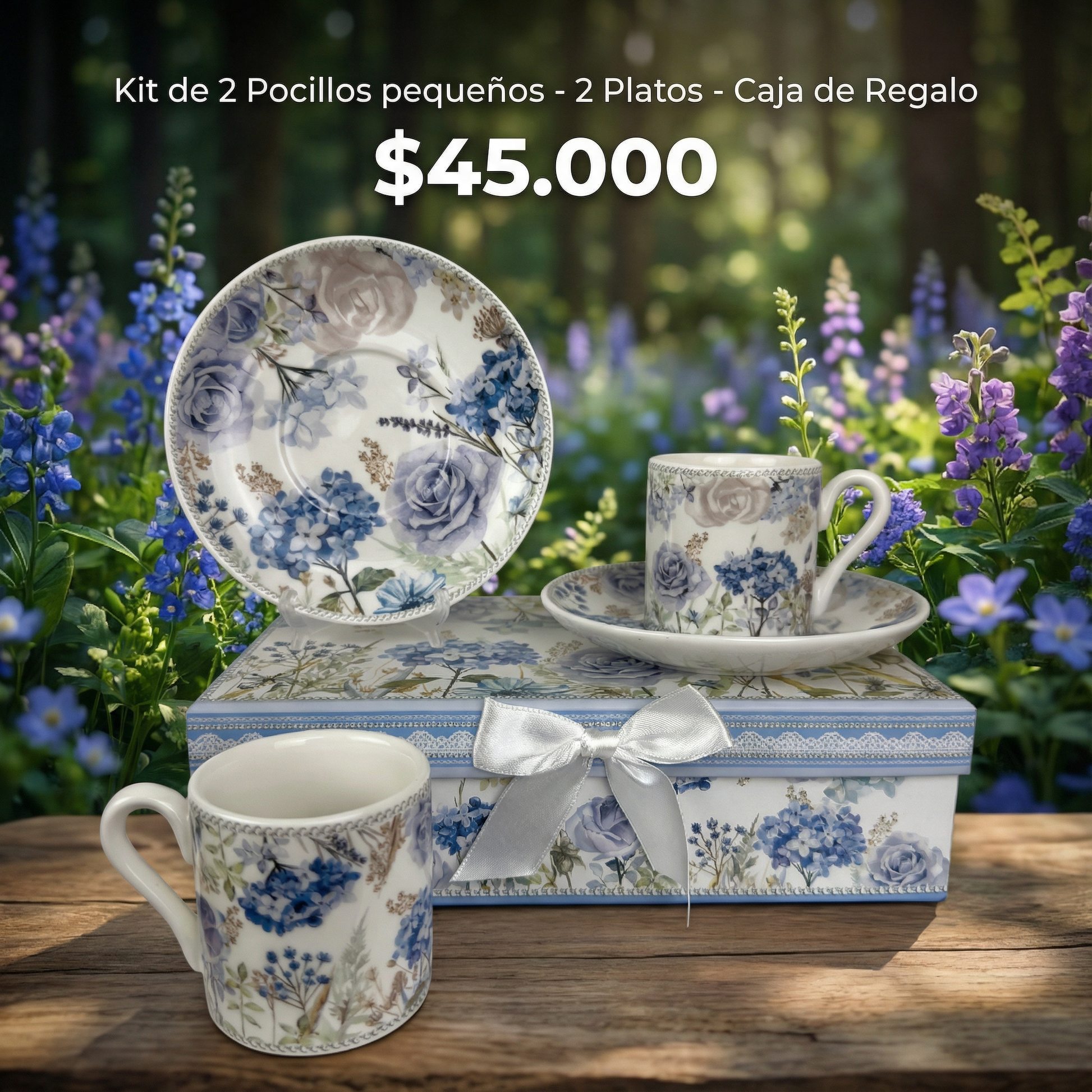 Kit de vajilla de 2 pocillos pequeños con plato + Caja de Lujo
