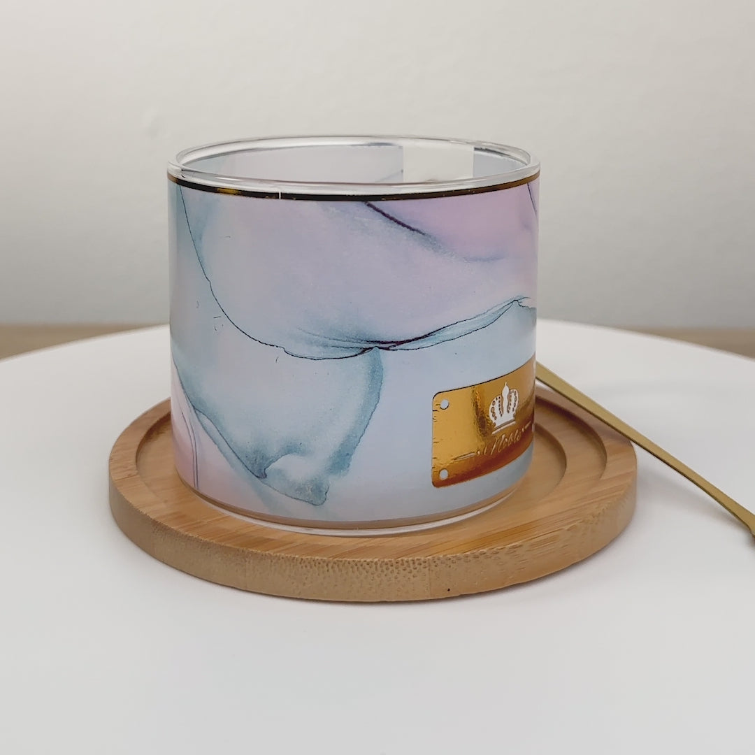 1 Pocillo de Vidrio con Base de Madera: Con un diseño elegante y minimalista, el contraste entre el vidrio cristalino y la calidez de la madera lo convierte en una pieza decorativa en tu mesa.